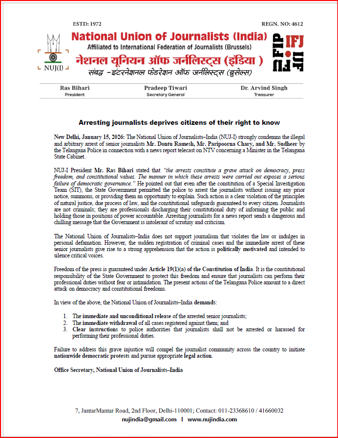 RAS BIHARI AND PRASANNA MOHANTY ELECTED PRESIDENT AND SECRETARY GENERAL OF NUJ (I)