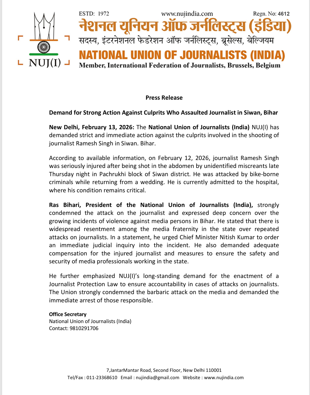 नई दिलà¥à¤²à¥€ जà¥à¤²à¤¾à¤ˆ 24, 2020 पतà¥à¤°à¤•ारों की हतà¥à¤¯à¤¾ और उतà¥à¤ªà¥€à¥œà¤¨ के खिलाफ à¤à¤¨à¤¯à¥‚जे का पà¥à¤°à¤§à¤¾à¤¨à¤®à¤‚तà¥à¤°à¥€ कारà¥à¤¯à¤¾à¤²à¤¯ तक वà¤